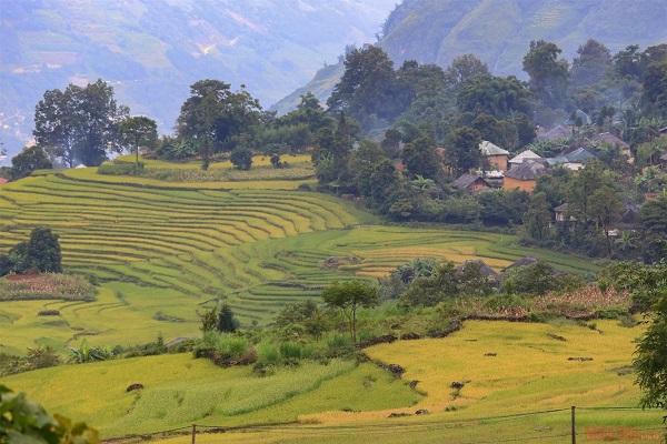 Trên đường τừ Sa Pa lên Y Tý du khách cũng có thể dừng chân ngắm lúa ở thung lũng Tả Giàng Phình, Dền Sáng. |