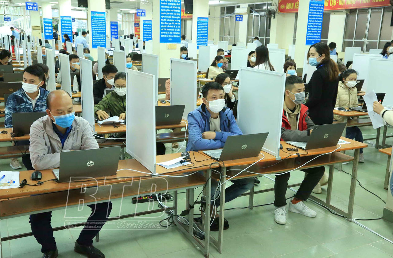 Đại biểu tham dự cùng các thí sinh trong kỳ thi công chức tỉnh Thái Bình năm 2021. |