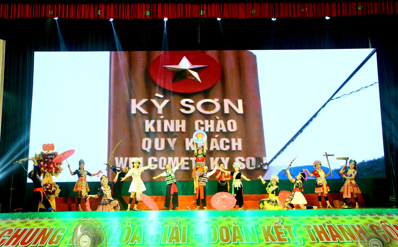 Phần thi giới thiệu đội huyện Kỳ Sơn. Ảnh: Thiên Ý |